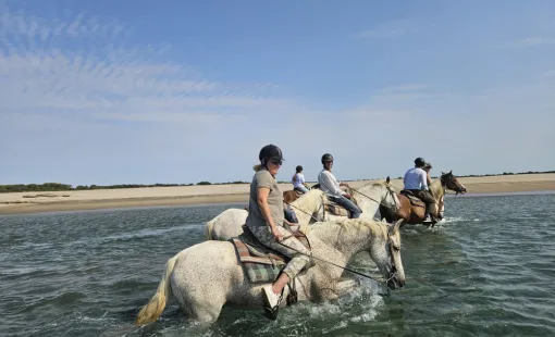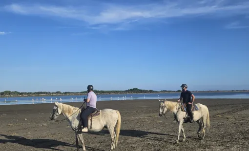 Découvrez la beauté sauvage de la Camargue grâce à une balade à cheval de demi-journée avec Promenade à Cheval La Cavale. Située au cœur des Saintes-Maries-…